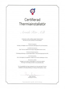 Kylcertifiering från Incert Certifierad Thermiaåterförsäljare och -installatör Utbildning inom Baga Water Technology Utbildning inom Fann VA-teknik Kylcertifikat Certifikat från Thermia Top